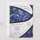 Este convite de aniversário de basquete fofo apresenta a imagem realista de uma bola de basquete estilizada e superdimensionada de forma abstrata, que tem painéis alternados azuis e brancos recoloridos - um padrão de desenho de paisleys, flores e penas em branco cobre os painéis azuis da bola de basquete - personalize com os detalhes da festa dela - por katz_d_zynes