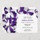 Este convite de festas desportivo bonito para um jovem jogador de basquete apresenta bolas de basquete roxas e brancas agrupadas à esquerda e à parte superior na frente e um cluster de solteiros que cobre a parte de trás do convite - personalize os detalhes da festa em coordenação de cores em fundo branco - por katz_d_zynes