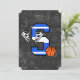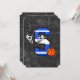 Divertido design de basquete para o jovem jogador de basquete ou fã de basquete. Destaque a letra S em cores de time azul e branco com basquete e bola de basquete. O fundo apresenta design de quadro negro com termos e imagens de basquete