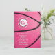 Este divertido convite de festas temático de basquete para um aniversário ou celebração de equipe apresenta a imagem realista de uma bola de basquete rosa de tamanho abstrato sobre a qual você pode personalizar seus detalhes de eventos - por katz_d_zynes