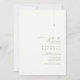 O convite de casamento minimalista, mostrado aqui em musgo branco pérola e escuro, tem um sotaque minúsculo em forma de estrela e uma modelo para adicionar facilmente seus detalhes de evento. Como parte de uma suíte de casamentos chic com uma paleta colorida inspirada na natureza e design minimalista, ela tem um aspecto eterno e sofisticado que impressionará seus convidados e ajudará a tornar seu dia especial inesquecível. Procure ID1046 para ver todos os produtos nesta suíte de casamento.