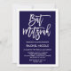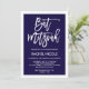 Este convite simples contudo à moda de Mitzvah do bastão caracteriza azuis marinhos um fundo colorido tipografia branca moderna com uma beira branca, e.