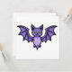 Este morcego estilizado apresenta asas simétricas e cores roxas vibrantes com olhos amarelos que vão fazer você se destacar em qualquer multidão. As linhas limpas e as cores planas criam uma visão moderna desta criatura clássica do Halloween. Perfeito para corujas noturnas e entusiastas do Dia das Bruxas!