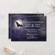 Aqui está um design assustador com um fundo de teia de aranha e texto de casamento de Halloween. Um morcego preto voador com asas estendidas é centrado em frente a uma lua branca e brilhante. Um bar de ornamentado está no topo com uma aranha saindo do bar. No canto esquerdo há outra teia de aranha com uma aranha pendurada numa corda. O fundo é uma mistura assustadora de azul, cinza, vermelho de sangue escuro e cinzas legal brilhando. Teve um evento temático no Halloween? Fácil de personalizar o texto para atender às suas necessidades. Texto é uma mistura de uma fonte gótica e um script pesado.