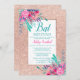 Convites Bat Mitzvah com flores em glitter dourado-rosa em