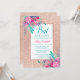Convites Bat Mitzvah em glitter dourado-rosa com floral em