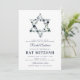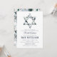 Convite de celebração de mitzvah elegante com um fundo branco simples que pode ser alterado para qualquer cor, uma estrela de davi floral em aquarela azul e um modelo de bat mitzvah moderno que é fácil de personalizar.