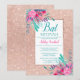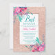 Convites Bat Mitzvah floral em glitter dourado rosa com aqu