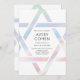 O Convite de Bat Mitzvah Holográfico Moderno, apresenta um esboço exclusivo e moderno da Estrela de David em torno de seus detalhes de eventos.