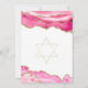 O brilho dourado rosa e falso agata com uma Estrela dourada de David decora esta elegante Invação do Bat Mitzvah. Este design apresenta uma borda superior de um agato de mármore cor-de-rosa acentuado com uma falso brilho dourado. Seus detalhes de celebração podem ser personalizados em uma caligrafia moderna de guião gaux gold. A parte traseira da placa tem um agate correspondente à estrela de David. Desenhada por Susan Coffey.