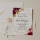 Este convite de burgundy bat mitzvah, que é um pincel de ouro geométrico, é perfeito para um simples bat mitzvah. O design apresenta flores cor-de-água, cor-de-rosa, esbranquiçadas, vermelhas, arrojadas e bordo, com folhagem verde, enfeitando uma moldura geométrica dourada.