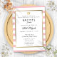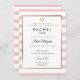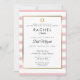 Com um fundo de listras cor-de-rosa e branco, este elegante convite do Bat Mitzvah apresenta uma elegante borda de folha de ouro falso que enquadra seus detalhes em tipografia quic. Projetado por Thisnotme©