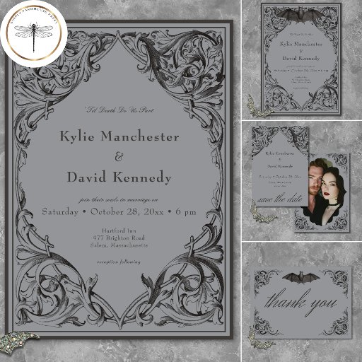 Victorian Bat Until Death Black & Gray WeddingCriado por Kathe Santillo
