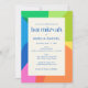 Este convite moderno de Bat Mitzvah apresenta formas geométricas ousadas e uma paleta de cores brilhantes e alegres que se sente comemorativa sem ser excessivamente formal. A tipografia limpa mantém o layout fácil de ler, enquanto a borda colorida adiciona personalidade e energia. Ideal para famílias que planejam um Bat Mitzvah contemporâneo com um serviço na sinagoga e celebração noturna. Toda a redação é totalmente personalizável para se adequar aos detalhes do seu evento.