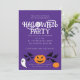Convidar uma festa legal, divertida e única para qualquer um. Você pode personalizar a cor roxa escura e o texto branco. Bolsas de orvalho do Dia das Bruxas de Laranja jack O'lanternas, fantasmas brancos e morcegos pretos e brancos em roxo. Divertimento bonito e um pouco assustador para crianças de todas as idades.