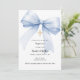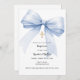 Um fundo branco, decorado com um arco grande azul claro e uma cruz ouro. Personalize e adicione o nome e os detalhes.
