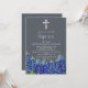 Boêmia, bluebonnets floral, azul empoeirado, moderno, roteiro, menino bebê, ouro e branco, religioso, convites de Natal. Dourada cruz, minimalista, convites para o Batismo Boho.