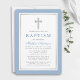 Convite para Batismo de Silver e Azul Claro Elegante com Cruz.