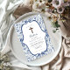 Celebre este marco sagrado com elegância eterno usando nosso convite batismo Toile de Jouy. Apresentando um clássico design francês de Jouy em tons azuis suaves, este convite exude encanto e sofisticação, perfeito para uma festa de chá refinada.