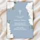 Celebre a ocasião sagrada e alegre do batismo do seu filho com este convite elegante e eterno. Apresentando um fundo azul sujento e poeirento adornado com delicados florais brancos e verde, este design irradia graça e simplicidade. No centro, uma cruz clássica adiciona um toque de significado religioso, fazer perfeito para um evento batizante católico ou cristão. Esta design neutra em termos de gênero é ideal para rapazes e raparigas, oferecendo uma estética moderna, mas clássica. Totalmente personalizável, você pode personalizar facilmente os detalhes para incluir o nome do seu filho, o local da cerimônia e quaisquer informações adicionais sobre eventos, como um brunch ou uma recepção. Seja um batismo, batizando, ou nomeando cerimônia, este convite dá o tom para uma celebração significativa e cheia de fé com entes queridos.