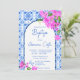 Convites Batismo Azulejos Azuis e Bougainvillea elegante