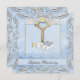 Damask Elegante Baptism Blue Lace White Jewel Cross Boy, Bíblia, Calçados Christening Invitation Baptism. Personalizar com seus próprios detalhes