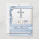 Damask Elegante Baptism Azul Damasco Branco Lace Jewel Cross Boy, Convocação para Batismo de Natal. Personalizar com seus próprios detalhes