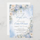Convites Batismo Boho Elegante Azul e Flores de Marfim
