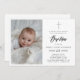 Perfeito para um batismo católico criança formal, este convite a fotos a preto e branco oferece um design eterno e elegante. Ideal para bebês e meninas, apresenta um layout neutro em gênero com uma cruz cristã. O convite combina a simplicidade moderna com a caligrafia manuscrita, fazer-a uma escolha refinada para qualquer batismo especial.