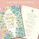 Com um belo convite de Natal Batismo desenhado e personalizado com flores cor-de-rosa e azuis e um belo verso das escrituras douradas. Todos os textos e fontes podem ser modificados.