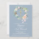 Apresentando uma delicada camada floral de aquarela, este batismo chic ou convite batizante pode ser personalizado com seus detalhes especiais de eventos, definidos em tipografia chica sobre um fundo azul empoeirado. Projetado por Thisnotme©