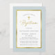 Convites Batismo Clássico de Azul e Script Dourado