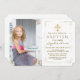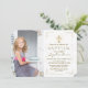 Design único! Apresenta uma imagem dourada quebrada, uma cruz dourada falsa, fotografia de menina, tudo sobre fundo branco. Nas costas: lindíssimas flores de aquarela cor-de-água. Personalizar ferramenta para adicionar suas informações. Itens correspondentes podem ser encontrados em minha coleção de fotos de batismo