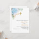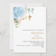 Pelo batismo de 2 crianças, rapazes, irmãos. Um fundo branco decorado com verde de eucalipto e folhas de ouro e uma flor azul clara. Personalize e os nomes, fotos e detalhes da cerimônia infantis. Letras pretas e ouros coloridas.