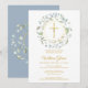 Convites Batismo Cristo Azul Empoeirado Grinalda Cruz Doura
