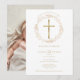 Convites Batismo Cruz Dourada Floral Foto