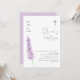 Lavanda de aquarela minimalista moderna convite para batismo floral de batismo batizante. Para alterar as cores e fontes, escolha editar este design para abrir mais as opções adicionais de personalização.