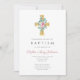 Peões Florais Rosa Personalizados Convite Cruzado Batismo.
