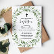 Este simples convite cruzado verde moderno é perfeito para um batismo de aquarela. A design apresenta uma elegante coroa verde, inspiradora beleza natural.