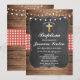 Batismo Cruzando Convite Vermelho Cheque Gingham Chalk. impressão incluído.