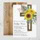 Convites Batismo da cruz de Girassol Rustic Boho Wooden