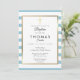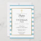 Convites Batismo da Cruz Dourada com Listras Azuis, Batizad