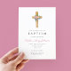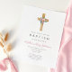 Convite para Batismo Floral Cruzado Rosa Personalizado