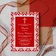 Batismo Cruzado De Damasco Vermelho, Natal Ou Primeiros Convites Comunitários Sagrados. Estes convites podem ser personalizados para qualquer evento sagrado, incluindo Confirmações, Crianças, Comuniões, Batismos e muito mais. Adicione seu texto personalizado usando a seção "Editar este modelo de design" ou clique no botão azul "Personalizá-lo" para alterar o estilo e a cor da fonte ou para adicionar uma foto ou texto extra à parte traseira do convite.