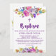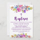 Convites Batismo das flores roxas e azuis