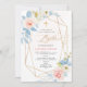 ArtsApp uma elegante aquarela lavada e pincelada rosas rosa, folhagem azul, acentuada com uma estrutura esmeralda cortada, uma cruz falsa de ouro para convite batismo, poeira dourada. Cores DIY. Todos os elementos são editáveis. Copyright © 2023 ArtsApp™. Todos os direitos reservados.