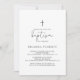 Este elegante convite simples de batismo caligráfico é perfeito para um batismo ou batizante de bebê rústico. O design simples e elegante apresenta a tipografia de scripts clássicos e ricos em preto e branco.