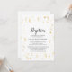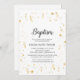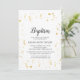 Este convite para o batismo da Celebração Dourada é perfeito para um batismo elegante, batizante ou dedicação de bebê para uma menina ou um menino. O design moderno apresenta decorações falsas em ouro sobre um fundo branco comum com simples caligrafia de cinza escura.