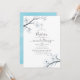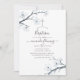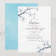Convite de batismo em aquarela floral de cerejeira branca com reverso em aquarela azul céu, projetado para ser personalizado rápida e facilmente de acordo com os detalhes do seu evento.
