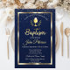 Elegante quadro de ouro e confete sobre fundo azul marinho.